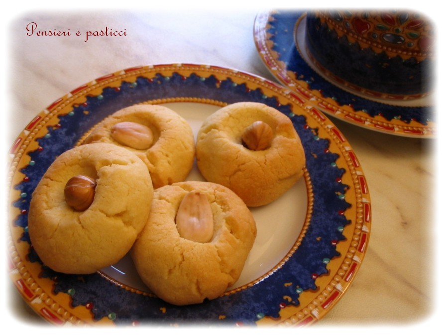 In ogni fossetta poi, mettere una mandorla o una nocciola…Grazia ha messo mezza ciliegia candita, con la parte tagliata rivolta verso il fondo.