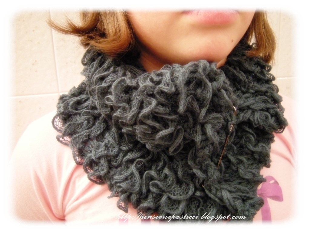 Ma che belle ste sciarpe! brava!!! mia mamma era un drago ai ferri e pure uncinetto….ma io non mi ci son mai messa! complimenti!!!