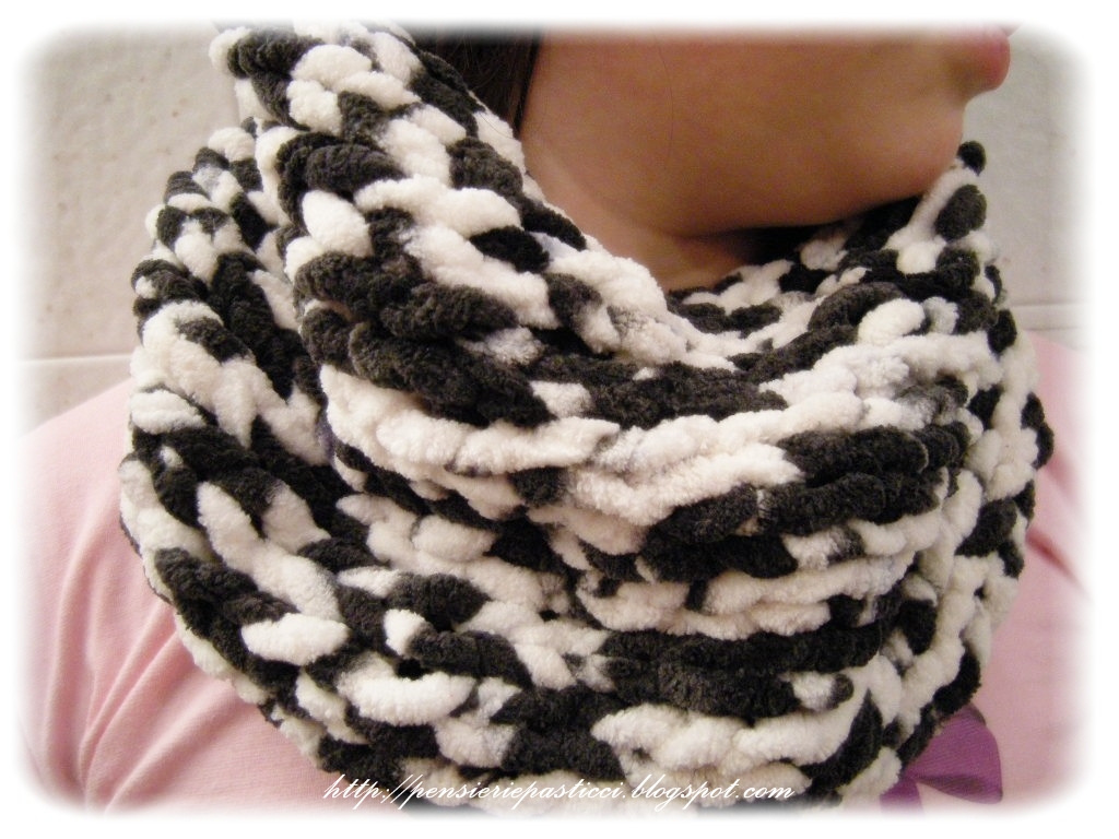 Anch'io ultimamente mi sono appossionata a fare sciarpe… sono morbidissime 🙂