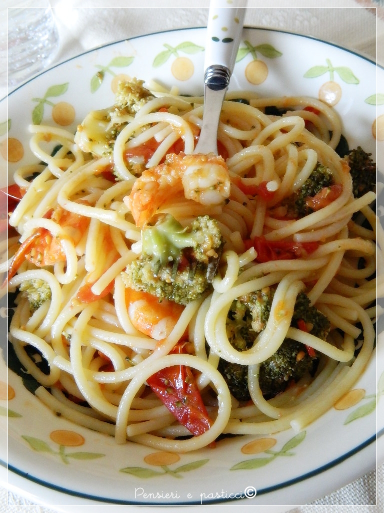 Questo piatto di spaghetti buca lo schermo cara Simo…mi piace molto il binomio broccoli e gamberoni…mi sa che enl weekend la sperimento, ho giusto un bel broccolone romano in frigorifero…Buon fine settimana!