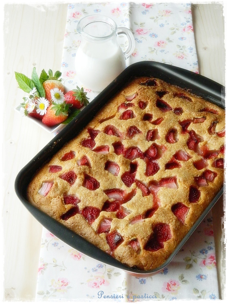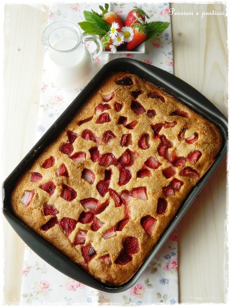 Che meraviglia questa torta, ho giusto delle belle fragole nell'orto che aspettano!!!!! Devo assolutamente provarla…..grazie dell'idea!!!!