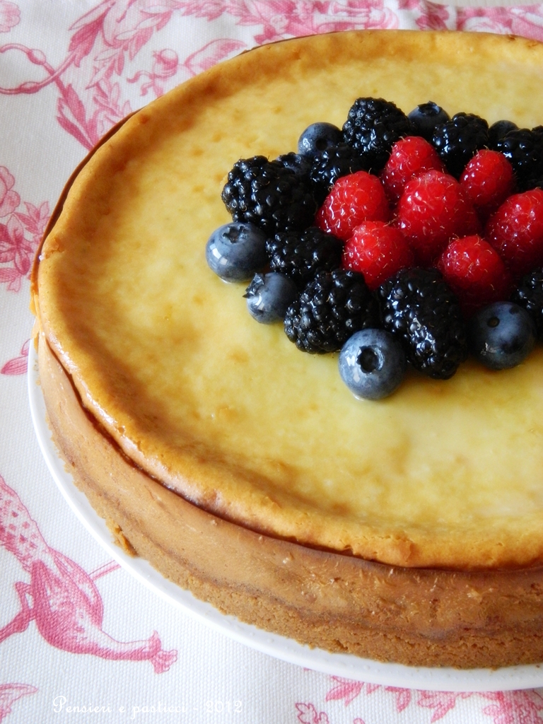 Quanto è buona la cheese cake.. io per la massiccia presenza di formaggio non la facico mai! bell'ìidea i frutti di bosco sopra.. spezzano il suo monocolore! baci e buona giornata 🙂