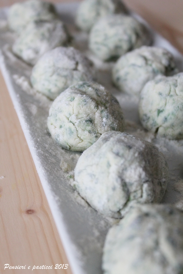 E’ importante usare molta farina per le palline di impasto…essa fa da pellicola protettiva in modo che in cottura, appena vengono immerse in acqua bollente, non si spappolino.